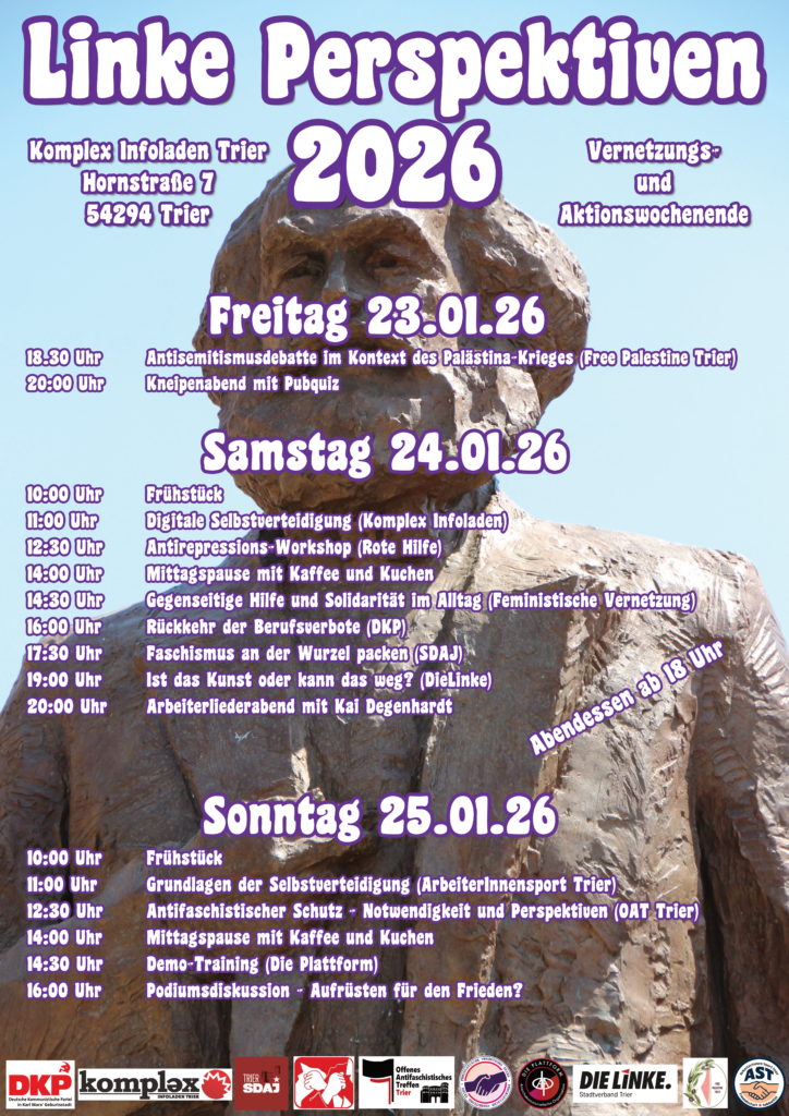 Vom 23. – 25. Januar laden wir euch zu „Linke Perspektiven 2026“ in den Komplex - Infoladen Trier ein.